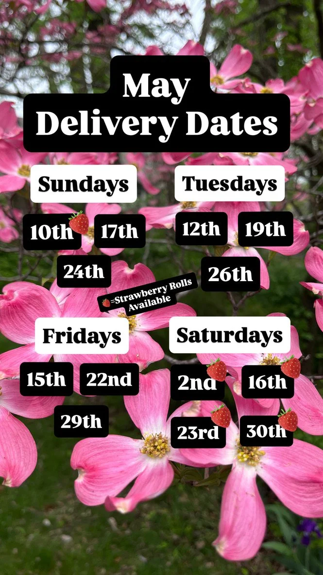 Offered occasionally throughout the year in very limited batches. 6 full size rolls with specialty fillings and toppings. Follow my social media to see whats being offered.