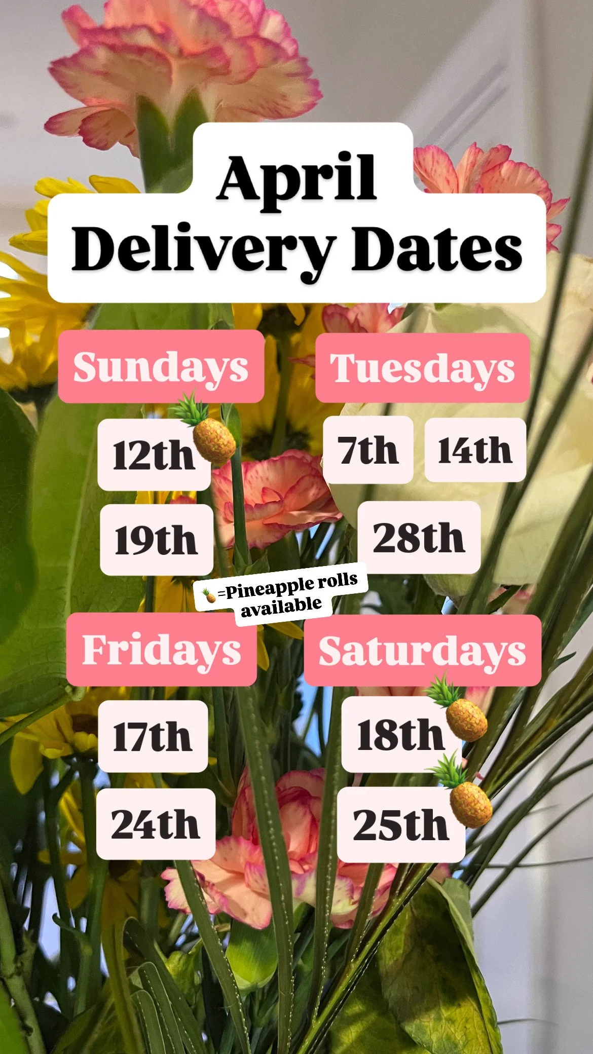 Offered occasionally throughout the year in very limited batches. 6 full size rolls with specialty fillings and toppings. Follow my social media to see whats being offered.